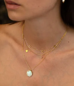 Bague en acier dorĂ© Ă lâor fin sertie dâun gros cabochon de nacre.