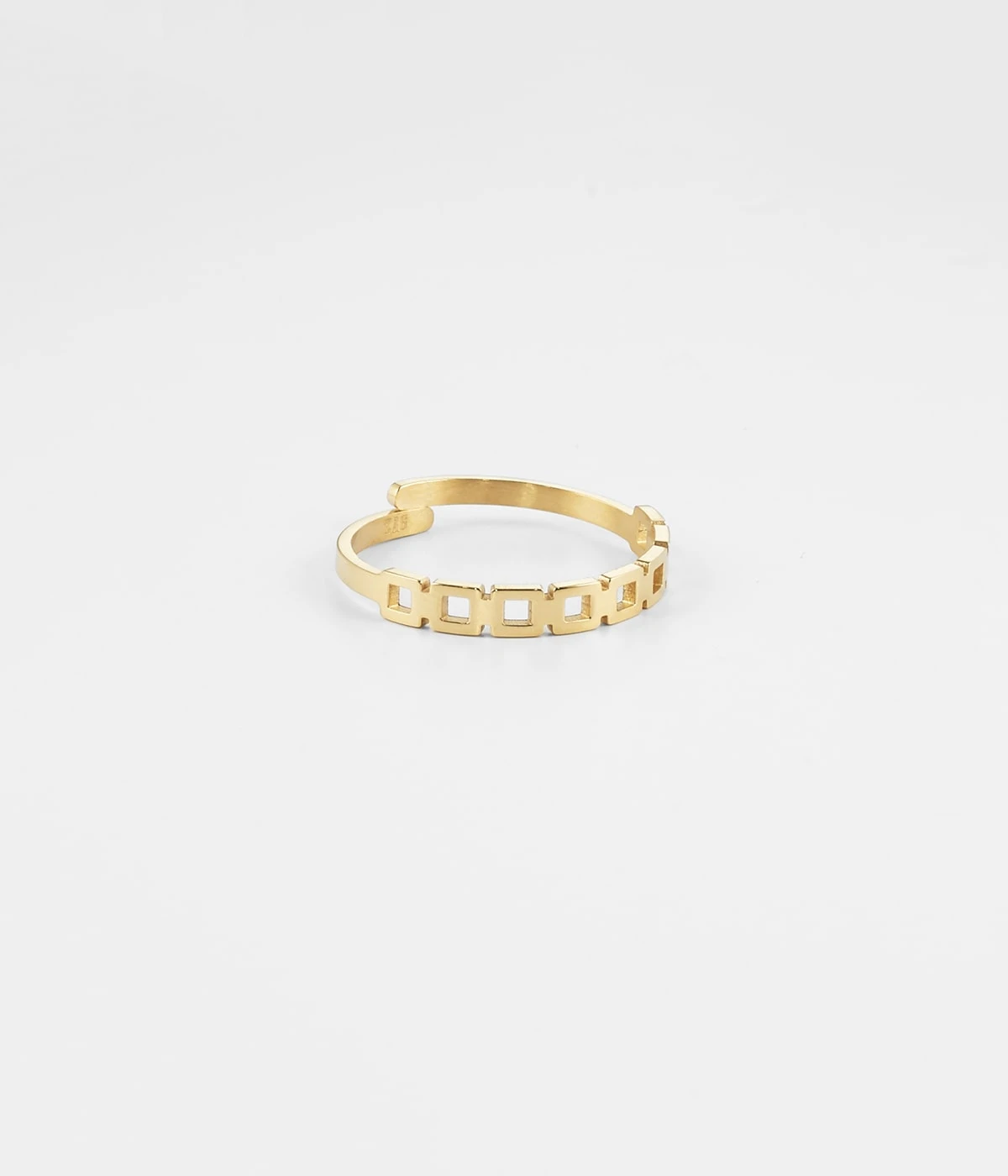 Bague ajustable aux motifs carrĂ©s en acier uni ou dorĂ© Ă l’or fin.