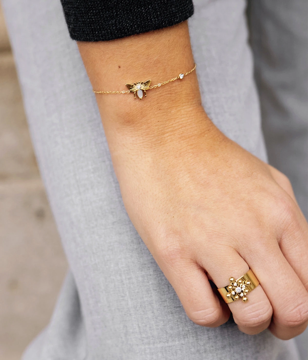 Ce bijou a beaucoup d’allure et habille toute de suite vos mains en y apportant de l’Ă©clat.