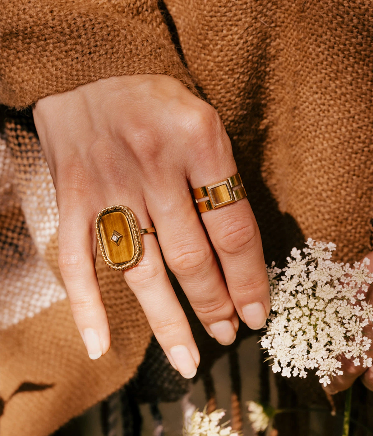 Nous conseillons de porter cette bague trĂšs Ă©lĂ©gante en accumulation avec d’autres bagues de nos collections.