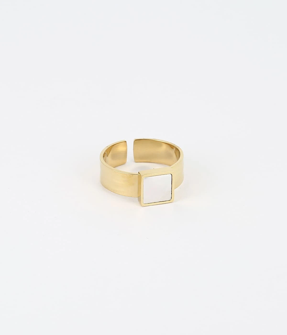 Bague large ajustable en acier uni avec en son centre une nacre.