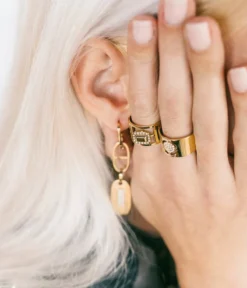 Bague jonc ajustable en acier dorĂ© uni ou Ă lâor fin et pavĂ©e en son centre dâune mĂ©daille de zirconiums brillants. Ultra chic et moderne, cette bague sâinstalle sur votre main comme une vraie piĂšce joailliĂšre.