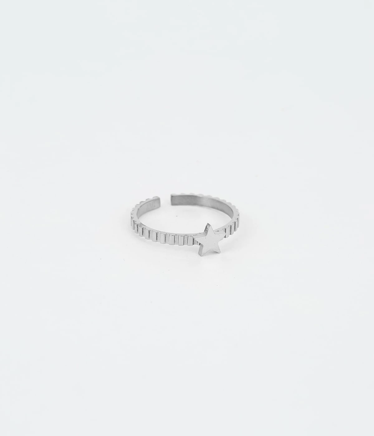 Bague ajustable en acier uni ou dorĂ© Ă l’or fin avec en son centre une Ă©toile.