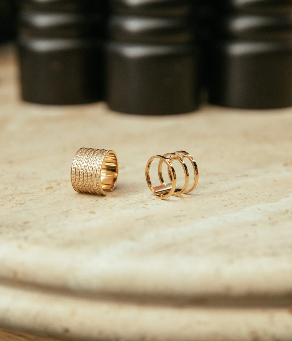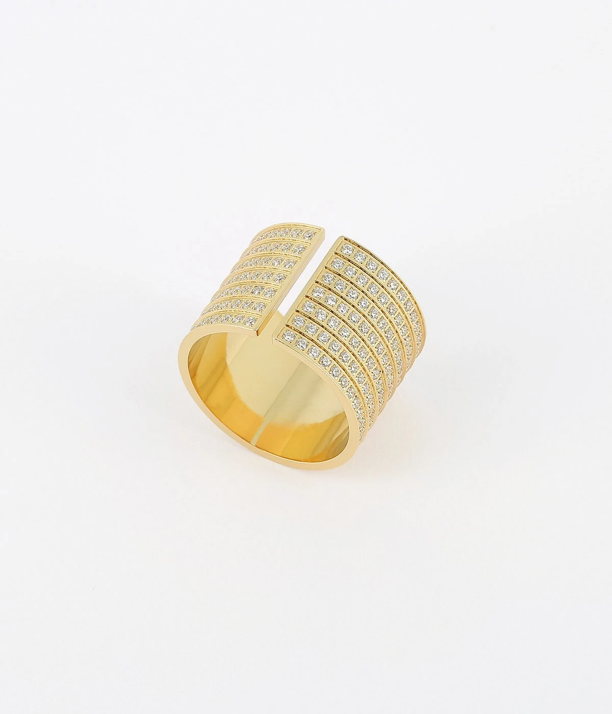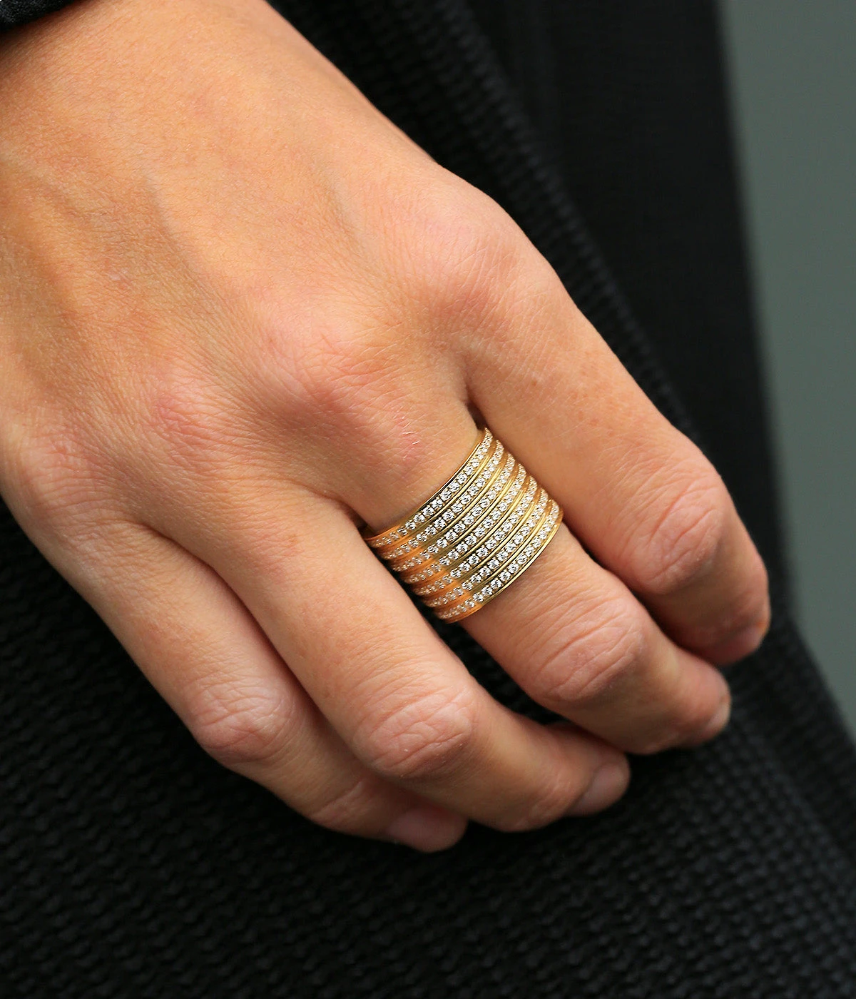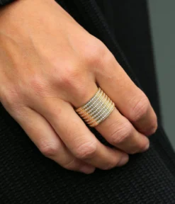 Bague jonc Ă taille en acier uni ou dorĂ© Ă l’or fin entiĂšrement pavĂ©e de zirconiums brillants.