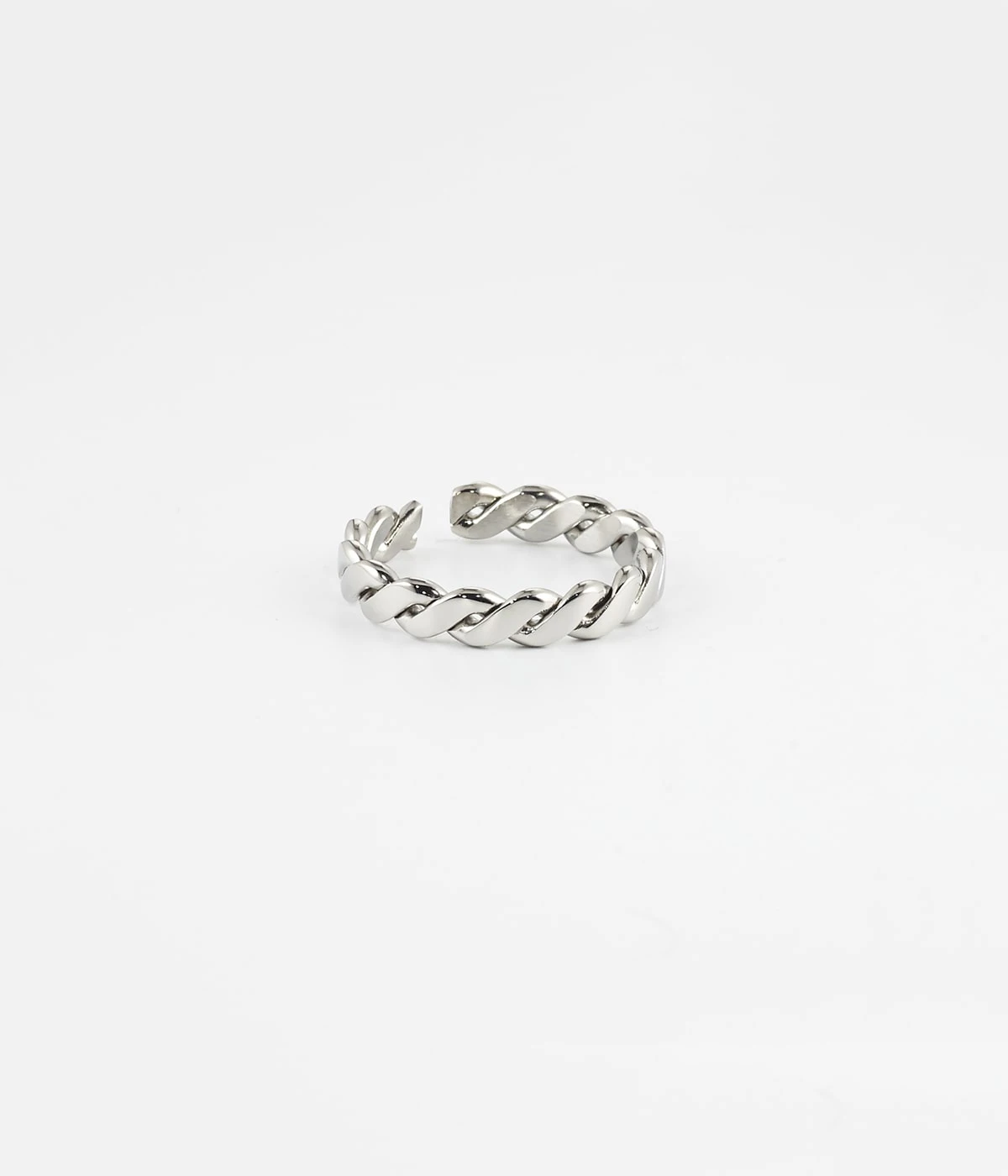 TrĂšs belle tresse d’acier uni ou dorĂ© Ă l’or fin pour cette bague ajustable.