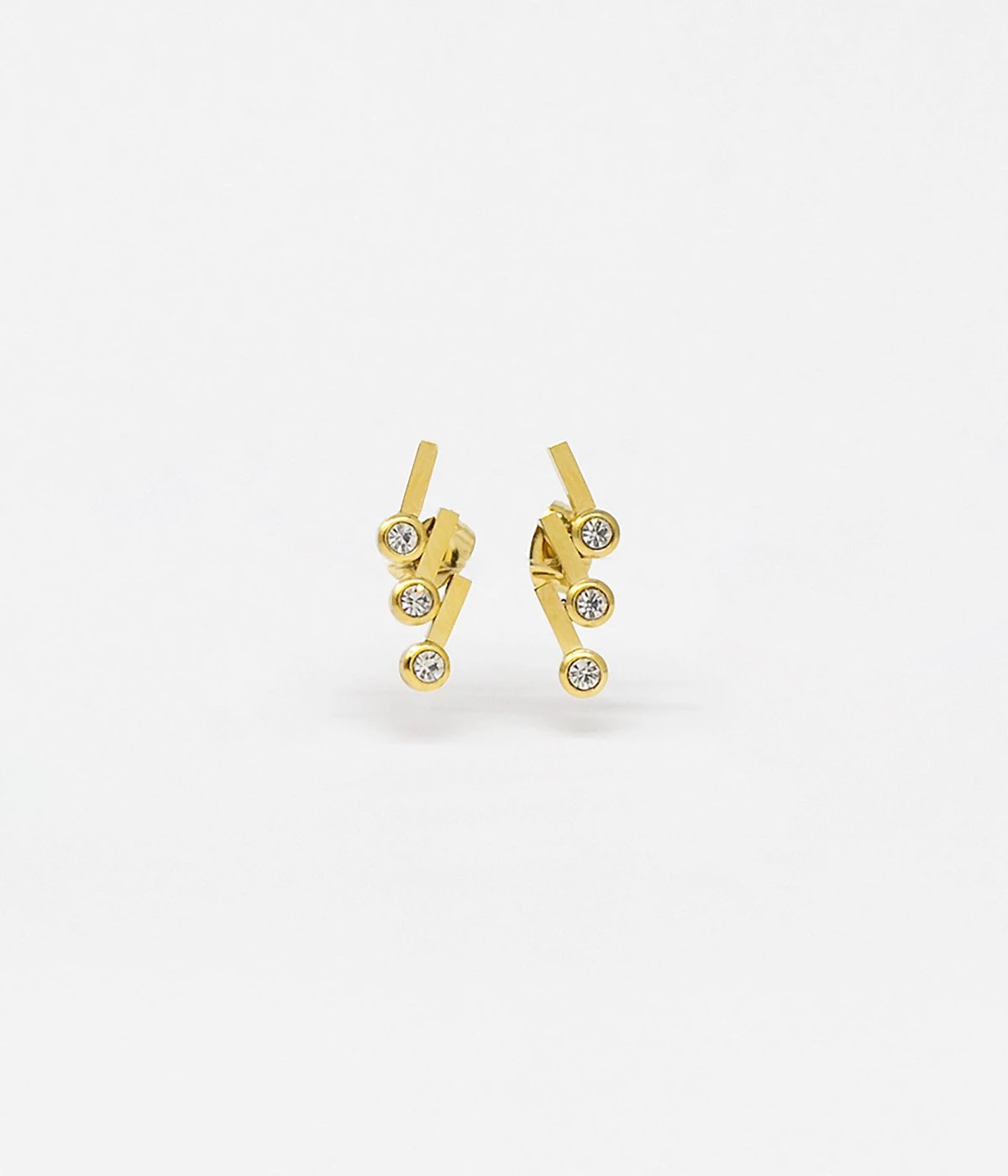 Boucles d’oreilles en acier uni ou doré à l’or fin sur lesquelles sont sertis des zirconiums.