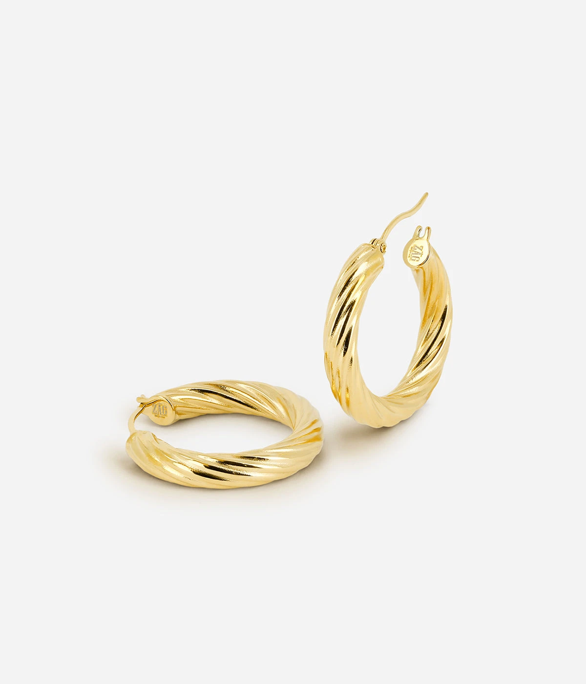 Boucles d’oreilles crĂ©oles en acier uni ou dorĂ© Ă l’or fin torsadĂ©.