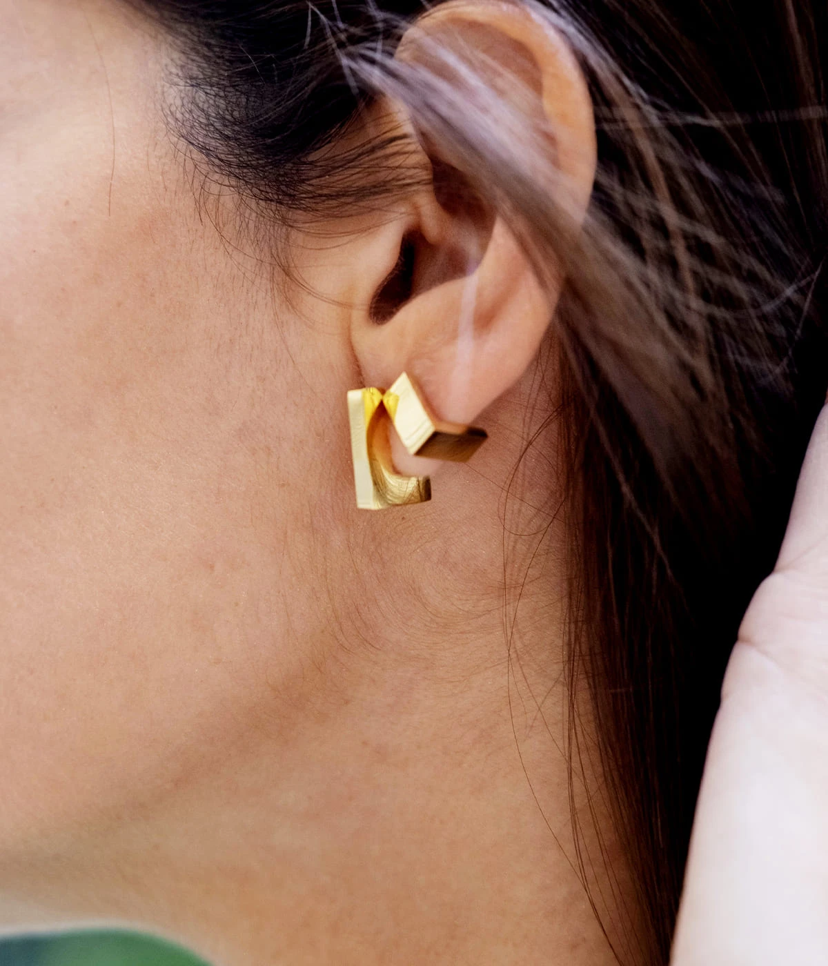 Boucles d’oreilles en acier uni ou dorĂ© Ă l’or fin de forme gĂ©omĂ©trique.