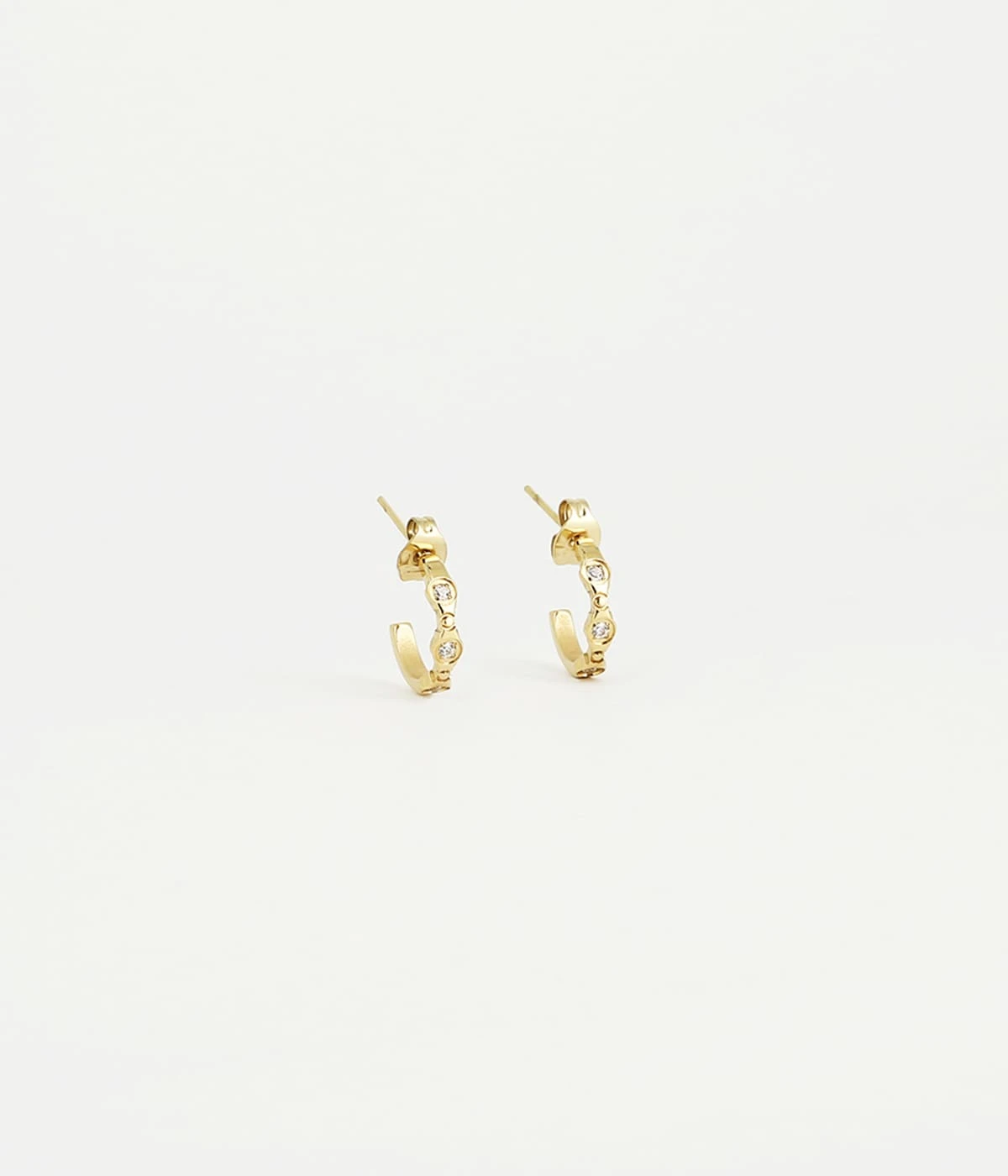 Boucles d’oreilles en acier uni ou dorĂ© Ă l’or fin serties de 3 zirconiums.