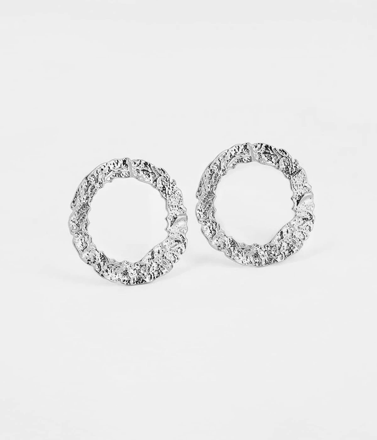 Boucles d’oreilles en acier uni ou dorĂ© Ă l’or fin reprĂ©sentant un cercle martelĂ©.