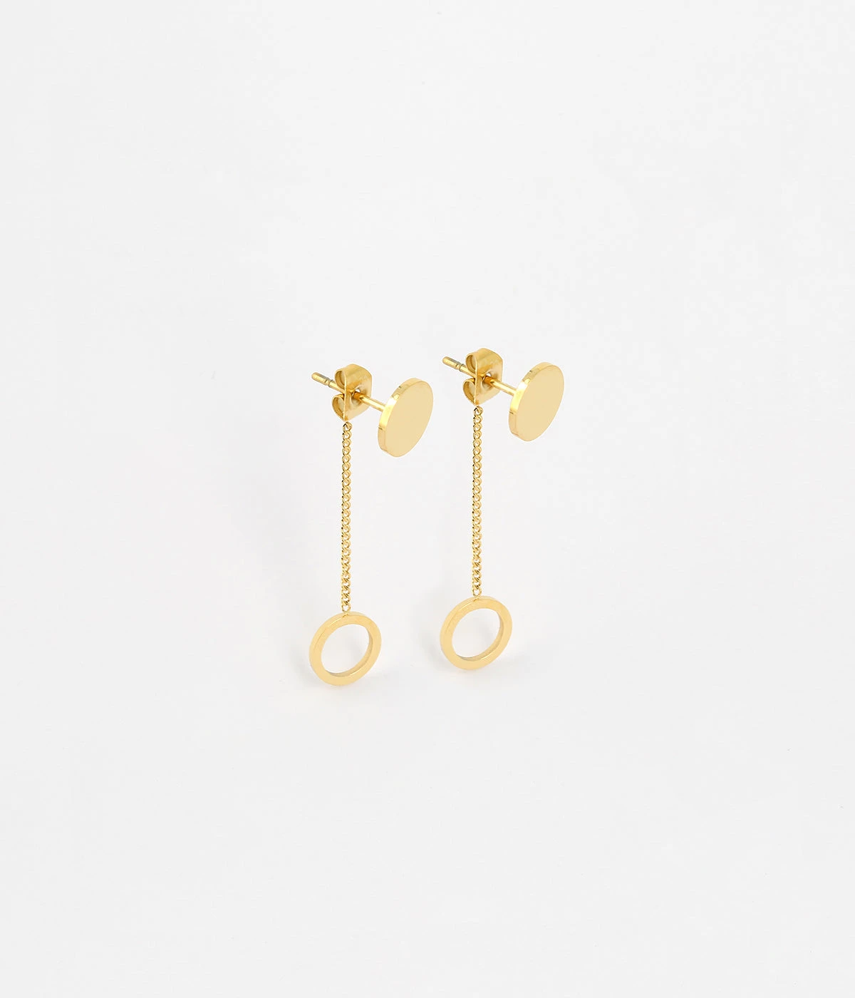 Boucles d’oreilles en acier uni ou dorĂ© Ă l’or fin trĂšs gĂ©omĂ©trique.