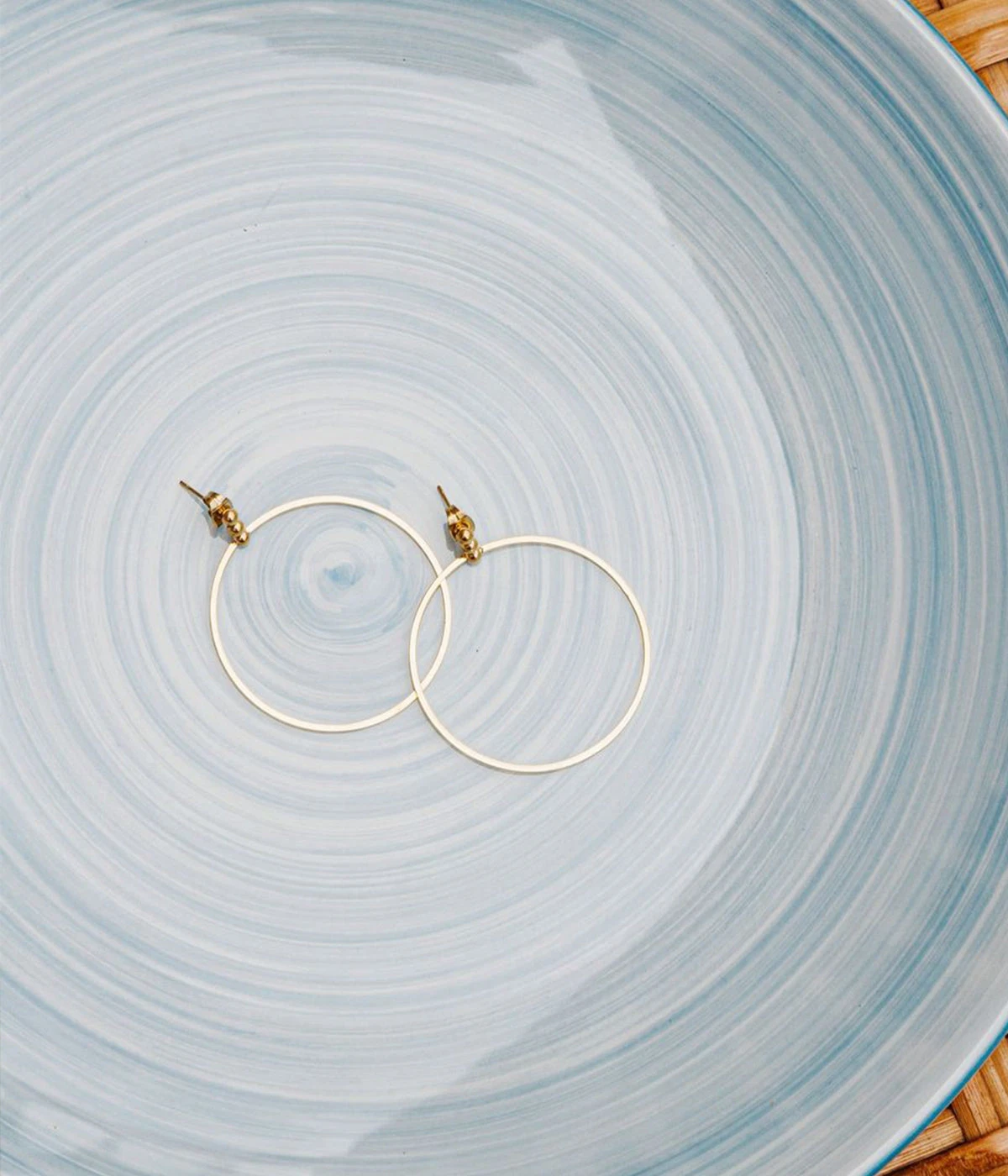 Boucles d’oreilles pendantes en acier uni ou doré à l’or fin composées d’un cercle en métal.