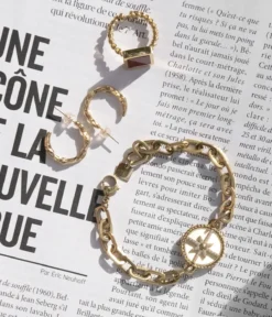 Boucles d’oreilles créoles en acier doré à l’or fin.