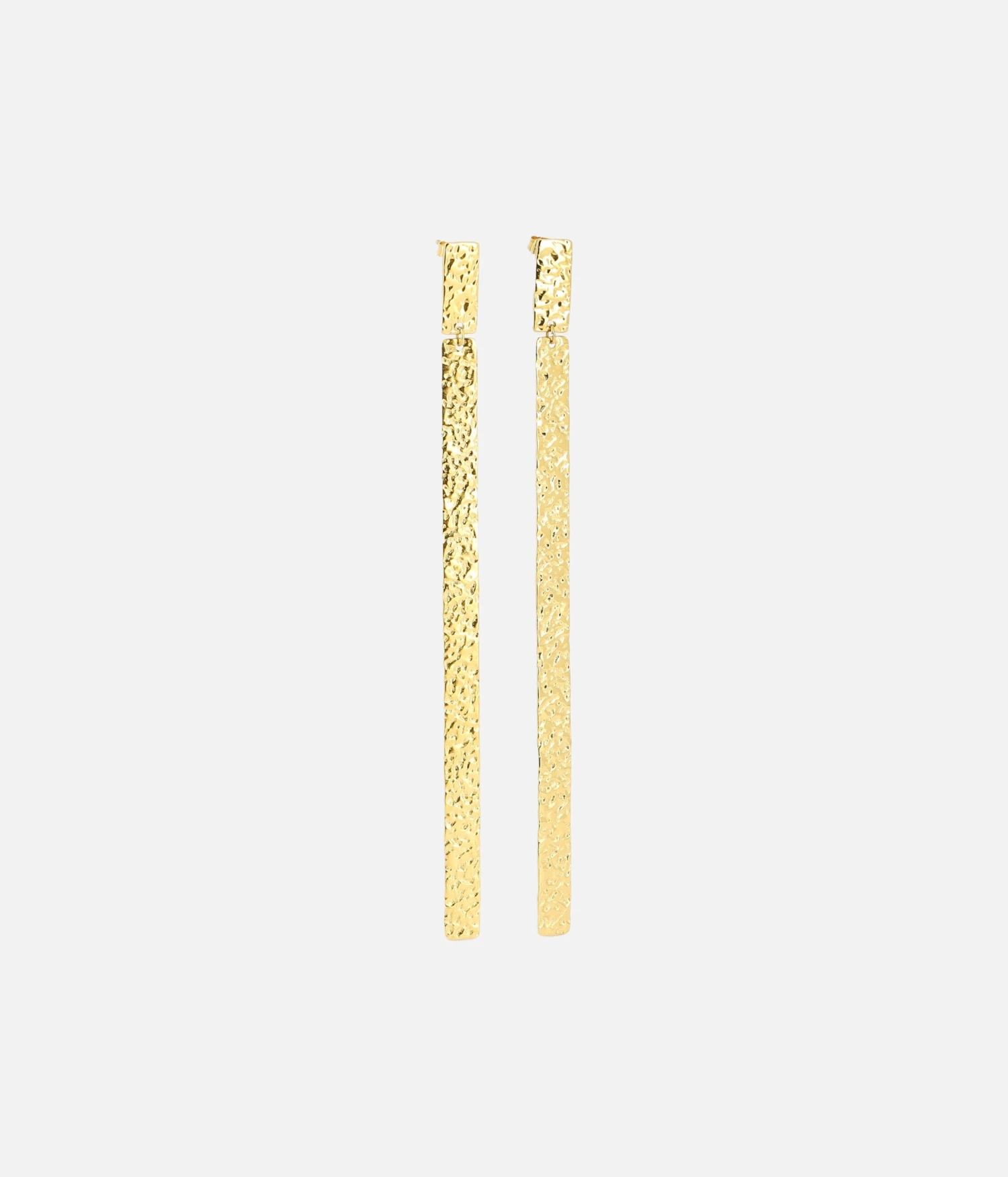 Boucles d’oreilles longues en acier dorĂ© Ă l’or fin de forme gĂ©omĂ©trique.