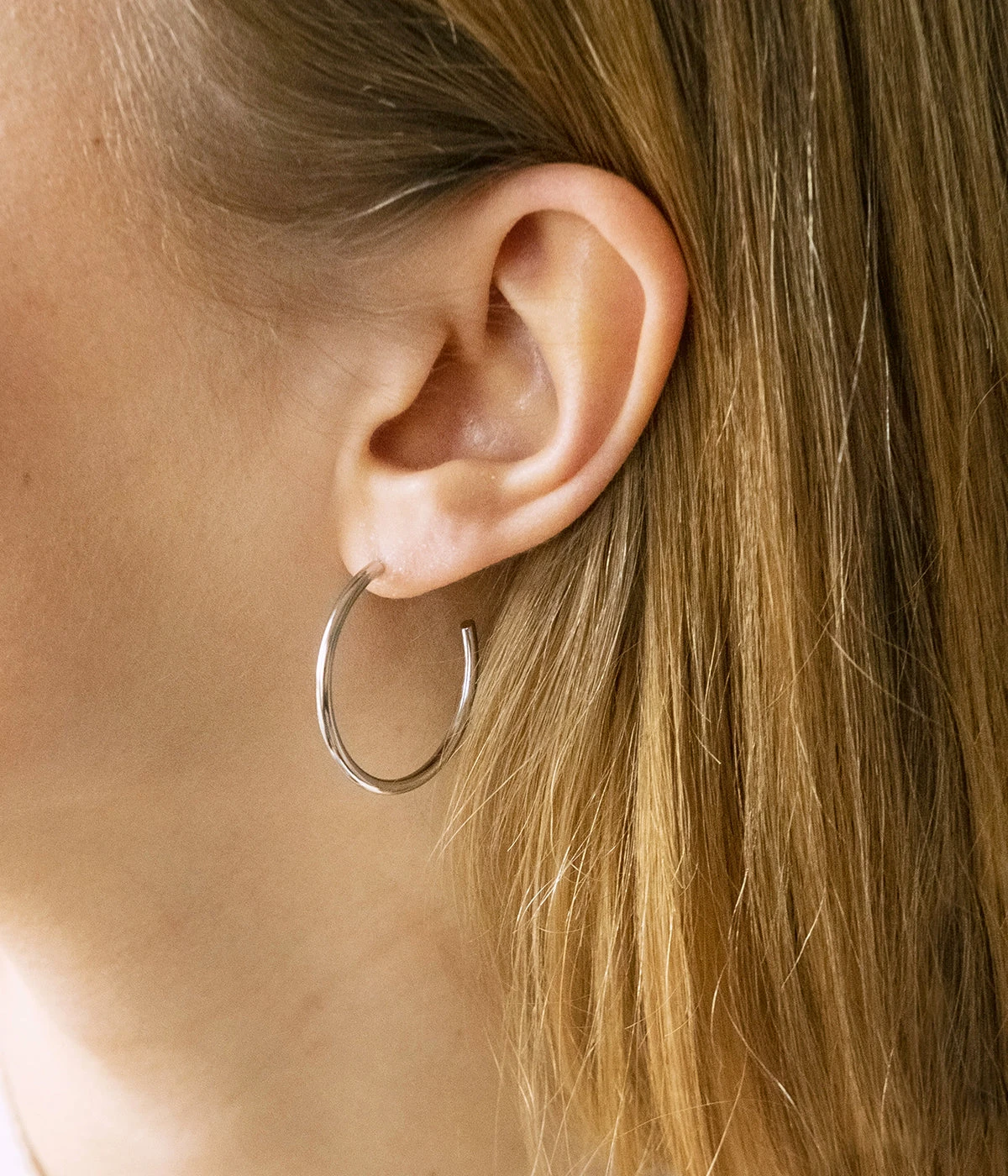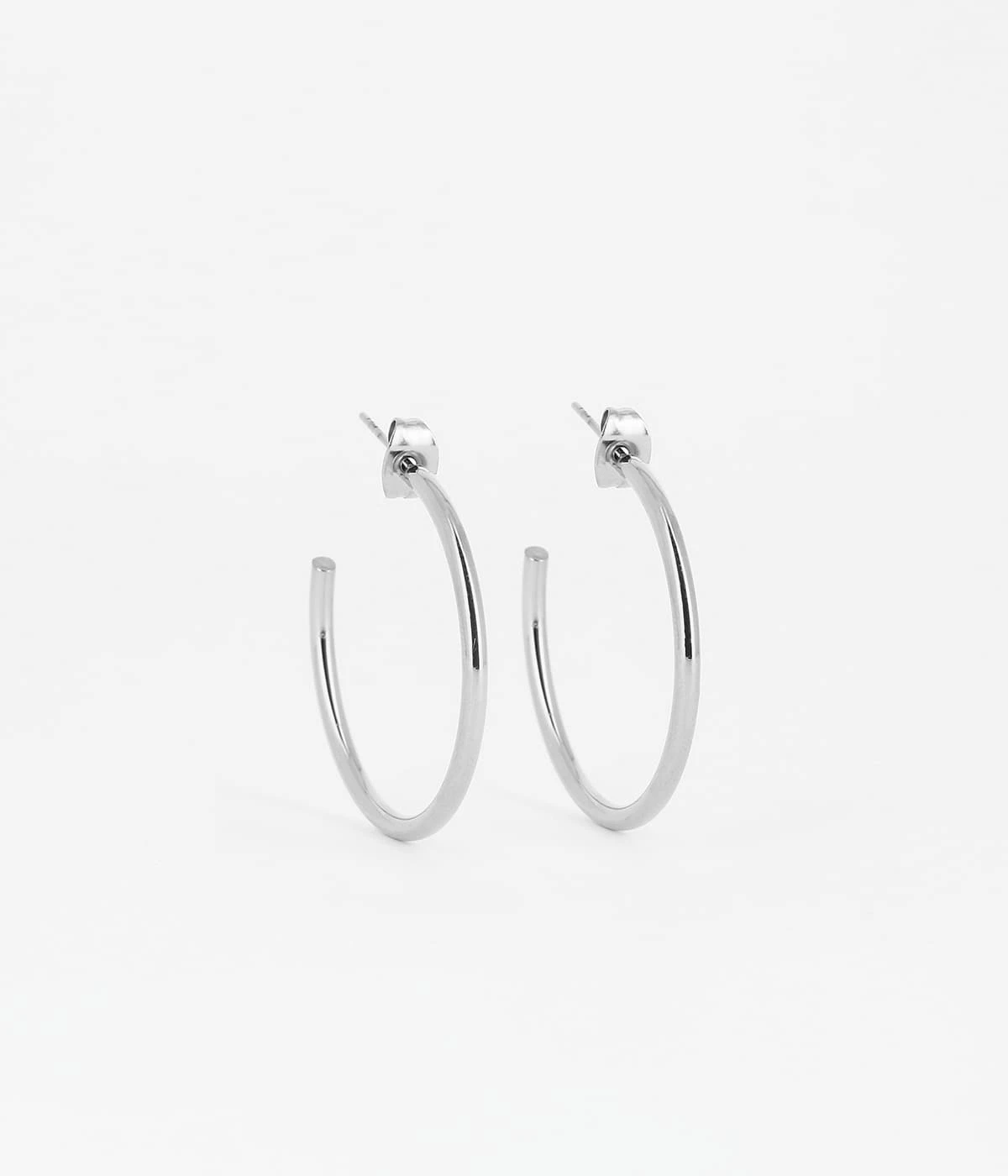 Boucles dâoreilles crĂ©oles en acier uni ou dorĂ© Ă lâor fin.