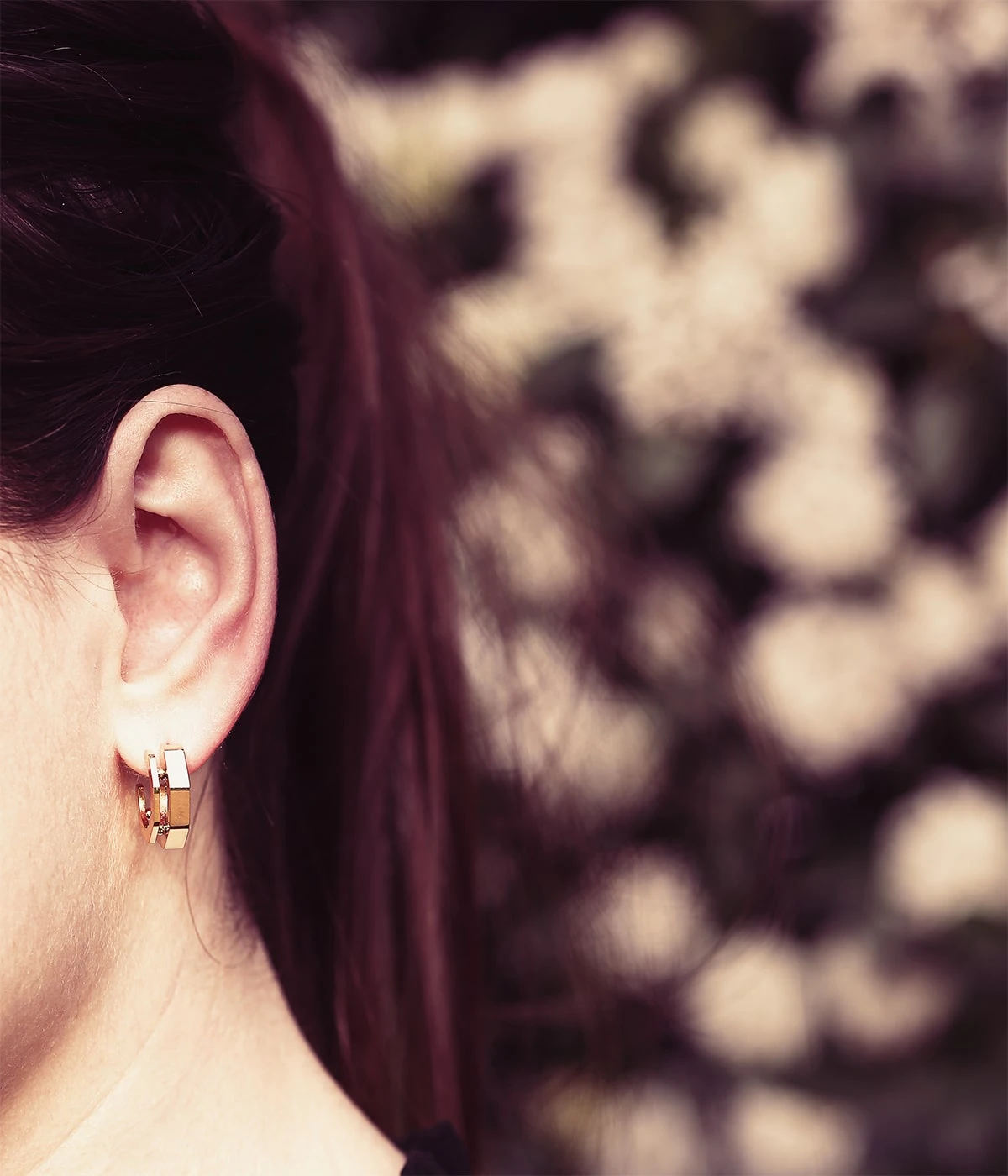 MalgrĂ© leur petite taille, elles sont formĂ©es dâun double anneau gĂ©omĂ©trique qui leur donne une allure architecturale et moderne.