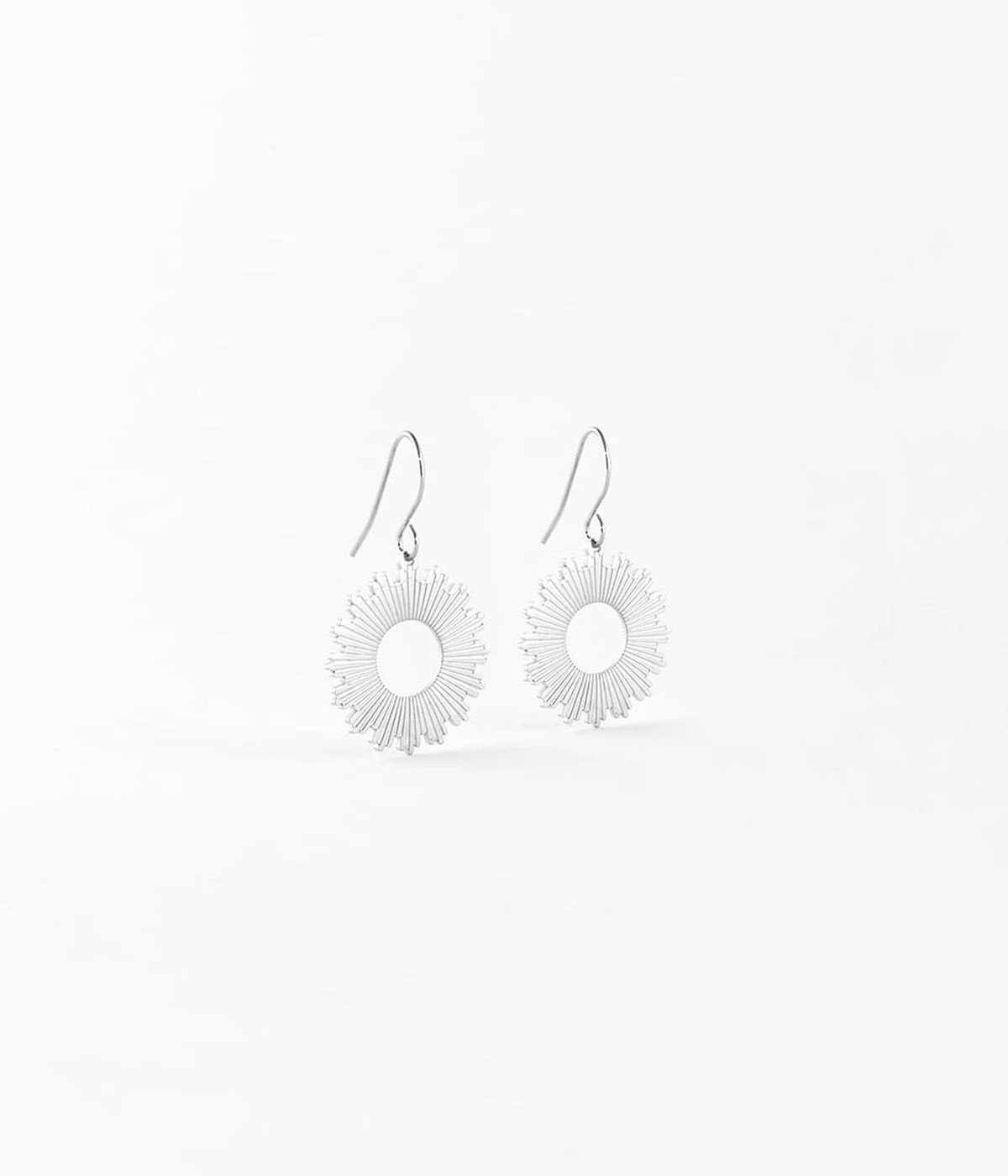 Boucles d’oreilles dormeuses en acier uni ou dorĂ© Ă l’or fin dĂ©corĂ©es d’un motif reprĂ©sentant un soleil redĂ©fini.