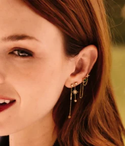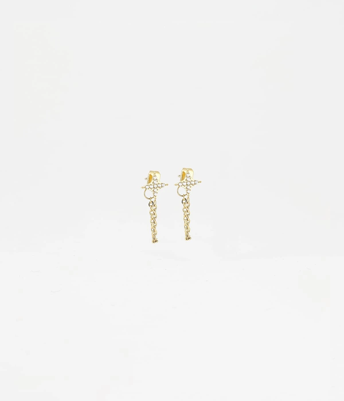 Boucles dâoreilles en acier uni ou dorĂ© Ă lâor fin en forme d’Ă©toile de zirconiums pavĂ©s.