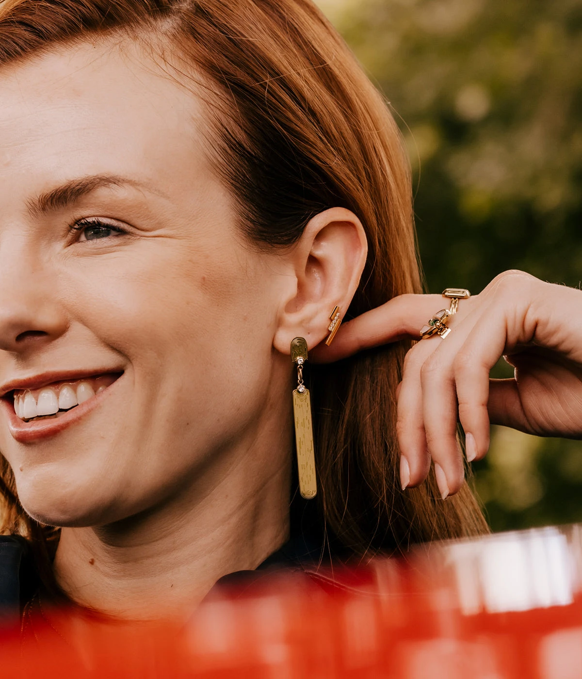 Boucles d’oreilles en acier dorĂ© Ă l’or fin.