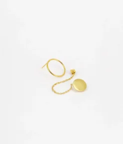 Ce bijou composĂ© en deux parties est formĂ© d’un cercle qui vient se poser Ă l’avant de l’oreille, et d’une autre partie pendante avec Ă son bout un cercle plat en acier.