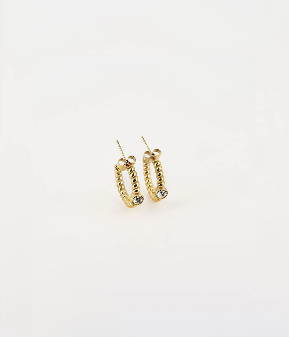 Mini crĂ©oles torsadĂ©es en acier uni ou dorĂ© Ă l’or fin avec en son centre un zirconium en serti clos.