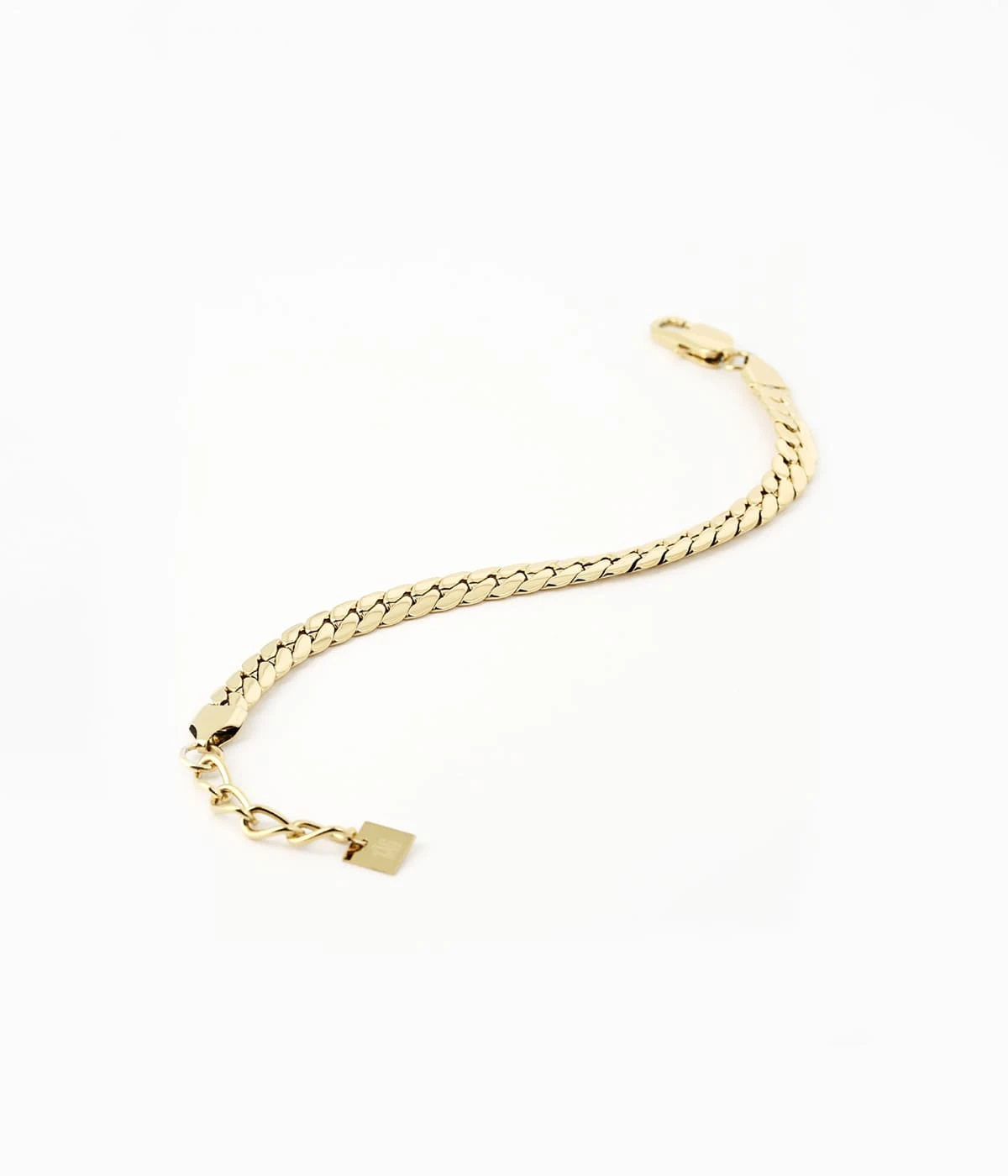 Ă la fois classique et contemporain, ce bracelet Ă maille serpent se porte seul ou mĂ©langĂ© avec dâautres bracelets chaĂźne de nos collections.
