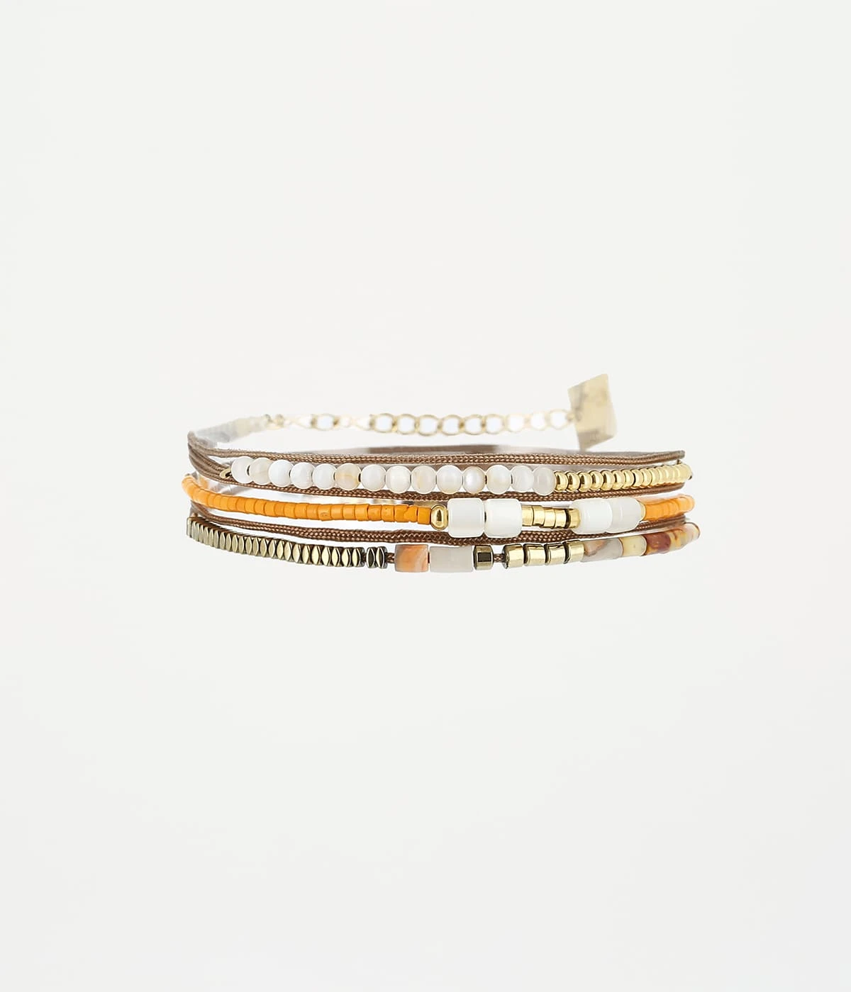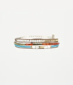 Les couleurs chatoyantes de ce bracelet ressortent sur un poignet bronzĂ©. Ă mĂ©langer avec dâautres piĂšces de nos collections.