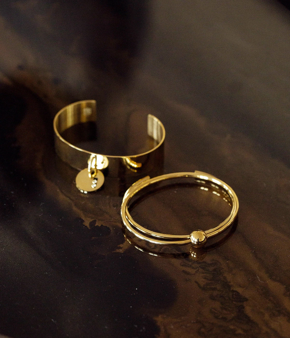 Bracelet jonc en acier uni ou dorĂ© Ă lâor fin sur lequel est attachĂ© une boule de mĂ©tal dorĂ©e. Il est parfait pour celles qui aiment les bijoux modernes et simples.