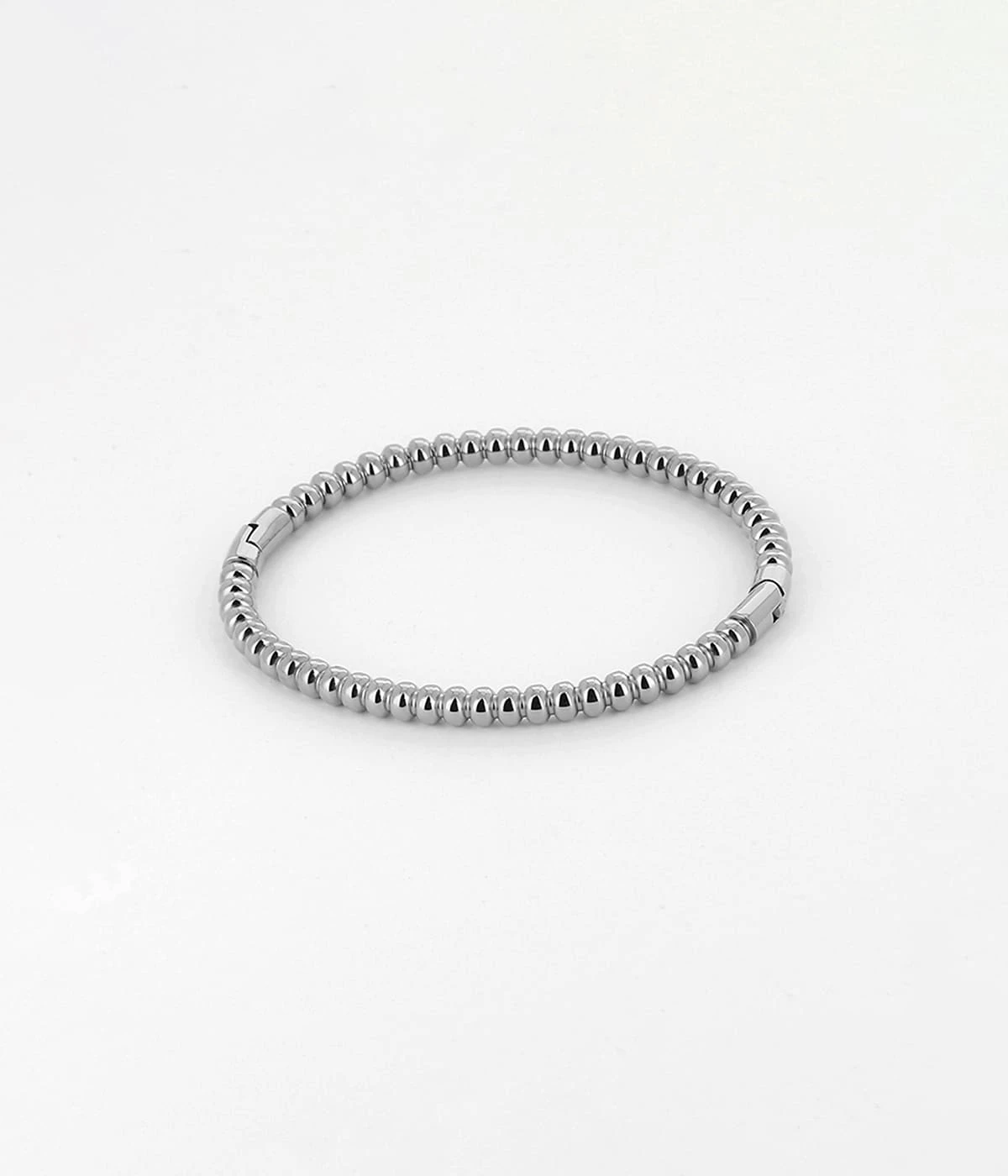 Bracelet jonc en acier uni ou dorĂ© Ă lâor fin formĂ© de petites boules de mĂ©tal.