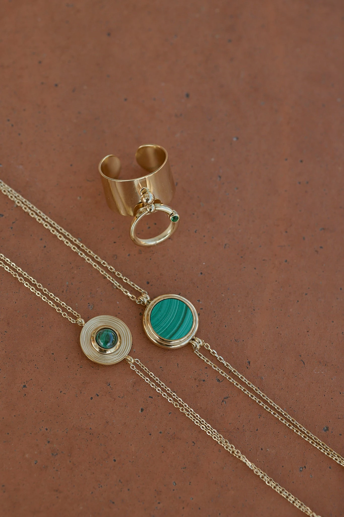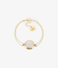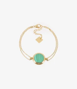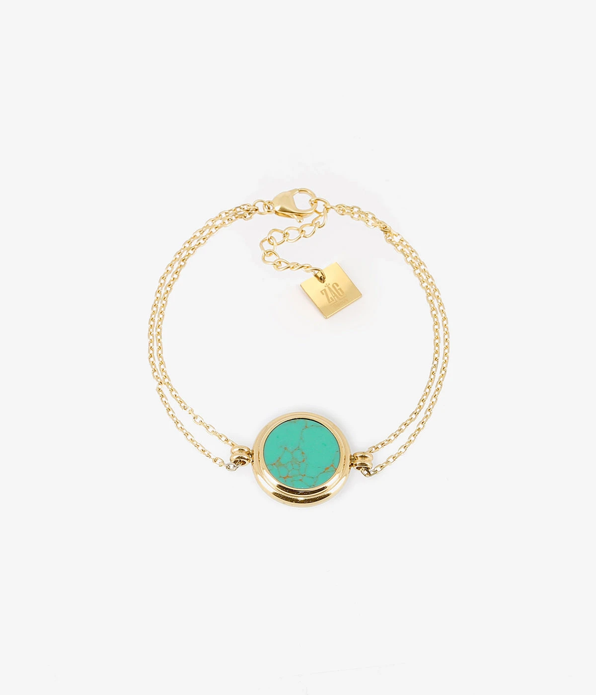 Bracelet à double chaîne en acier doré à l’or fin avec une pierre naturelle attachée en son centre.