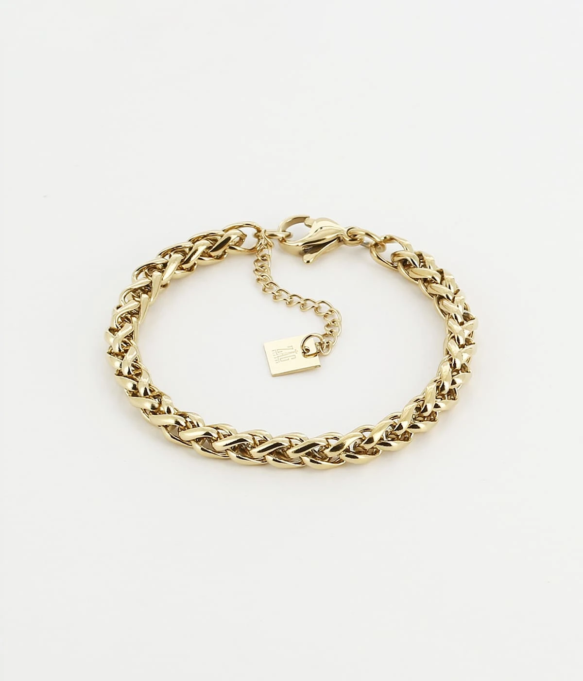 Bracelet Ă maillons en acier uni ou dorĂ© Ă lâor fin.