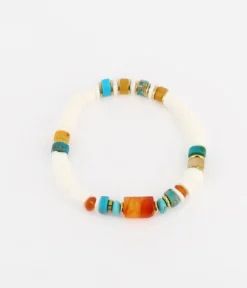 Les pierres sont mélangées formant une composition trÚs estivale sur le poignet.