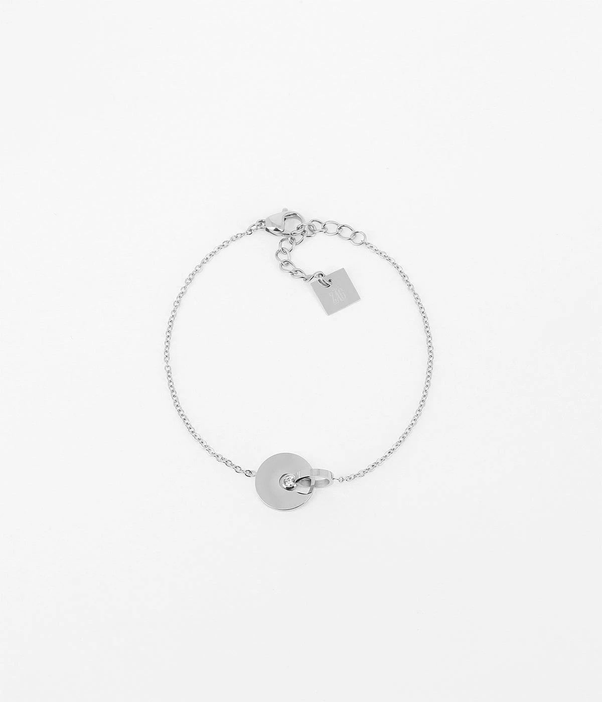 Bracelet en acier uni ou dorĂ© Ă l’or fin formĂ© de deux cercles attachĂ©s en leur centre.