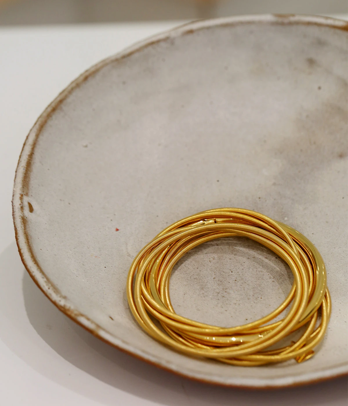 Bracelets ressorts de type semainier en acier dorĂ© Ă l’or fin en lot de 7 piĂšces.