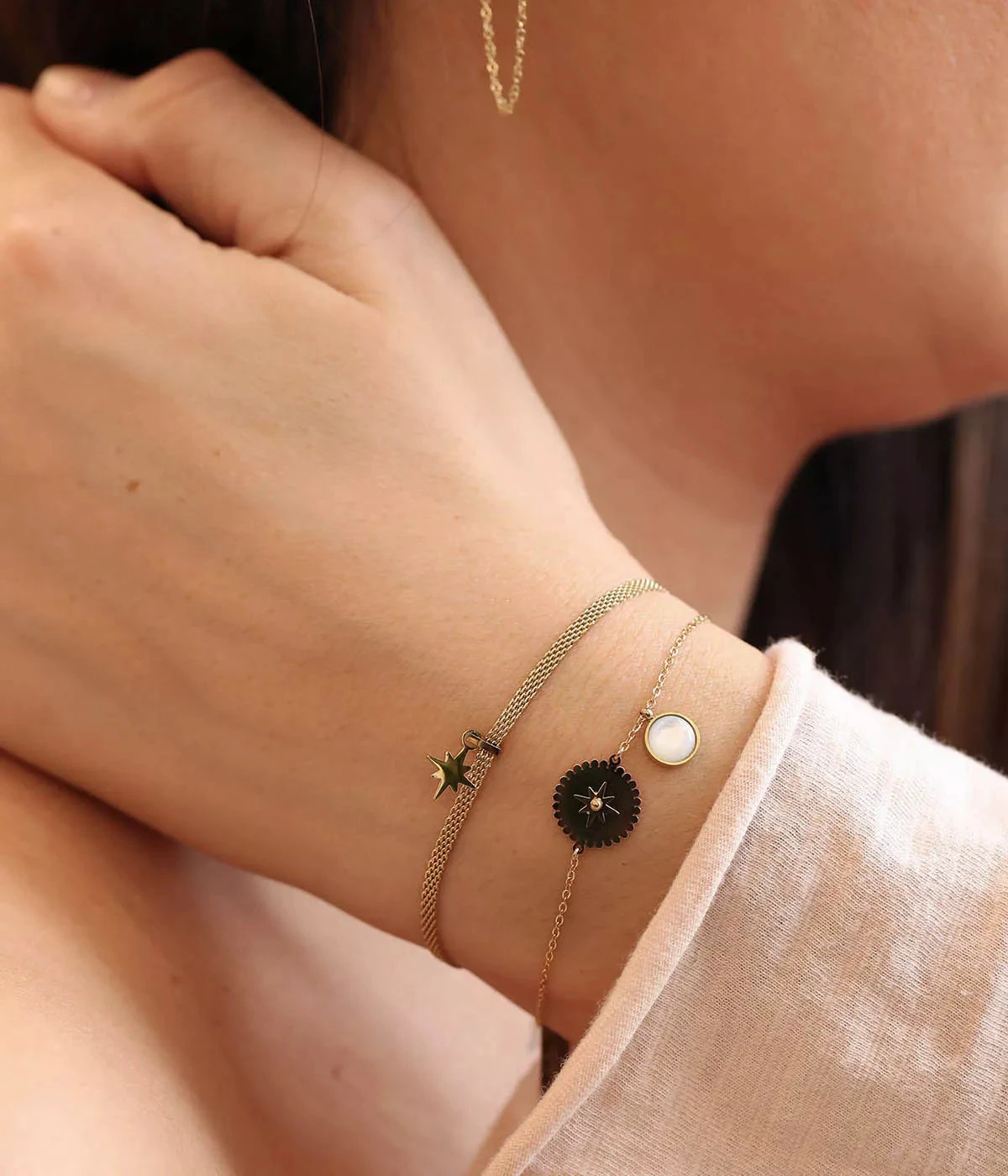 Il est conseillĂ© de le mĂ©langer avec d’autres bracelets de nos collections dans une accumulation sophistiquĂ©e.