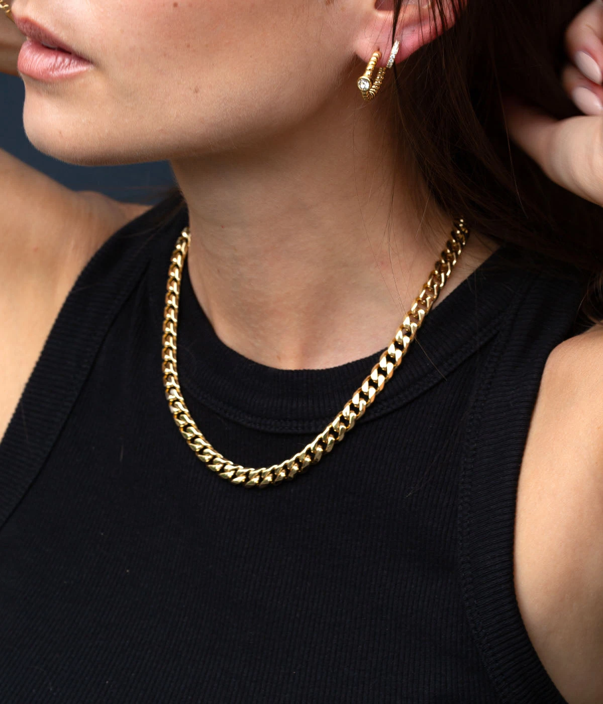 Collier maillons en acier uni ou dorĂ© Ă l’or fin.