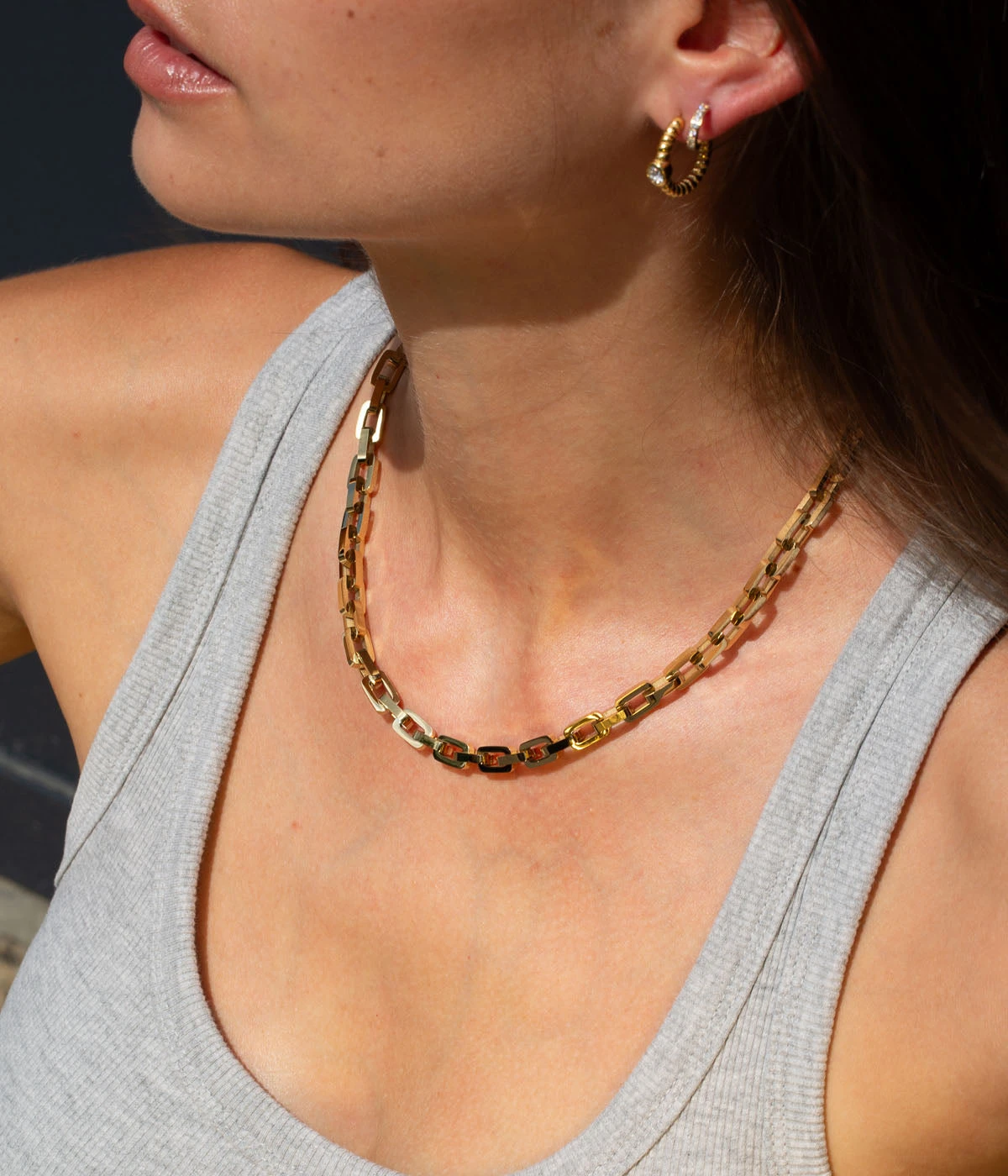 Collier maillons en acier uni ou dorĂ© Ă l’or fin.