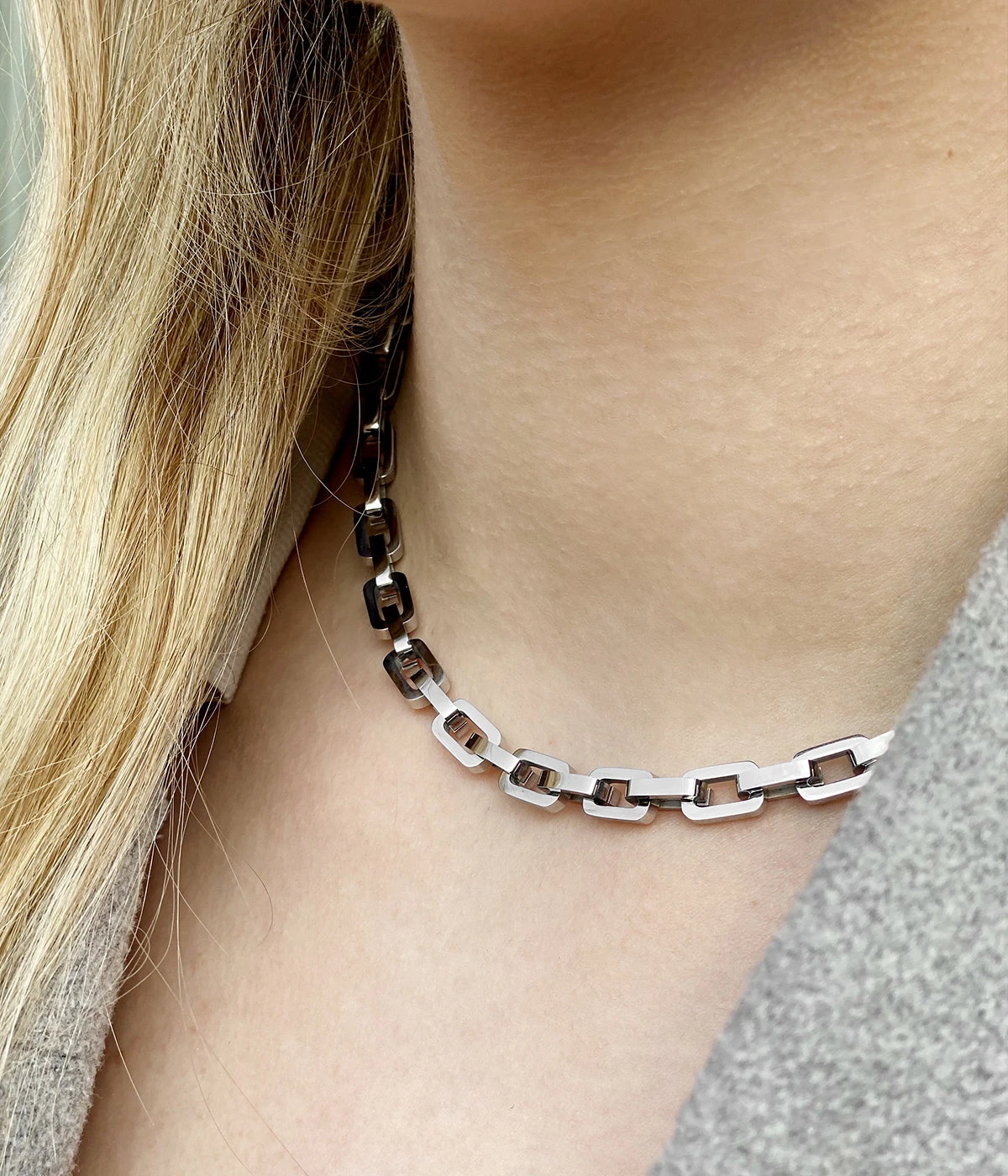 Collier maillons en acier uni ou dorĂ© Ă l’or fin.