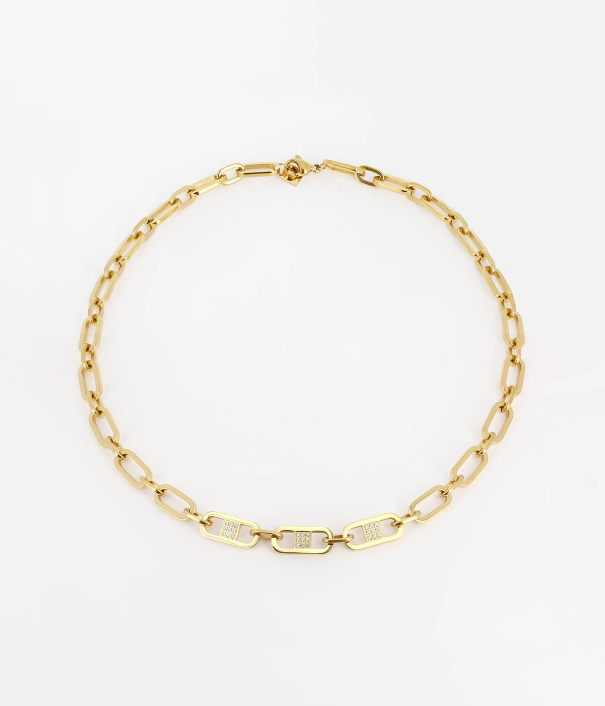 Les zirconiums sertis dans les trois maillons principaux donnent un air précieux au bijou, apportant une touche de lumière à votre visage.