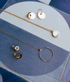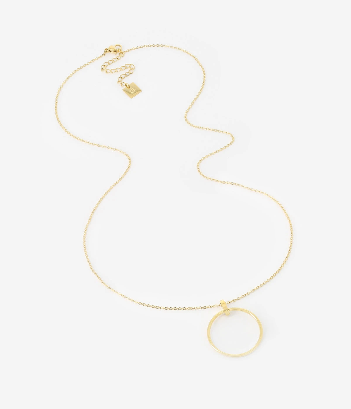 Collier en acier uni ou dorĂ© Ă l’or fin sur lequel est suspendu un pendentif en forme de cercle.