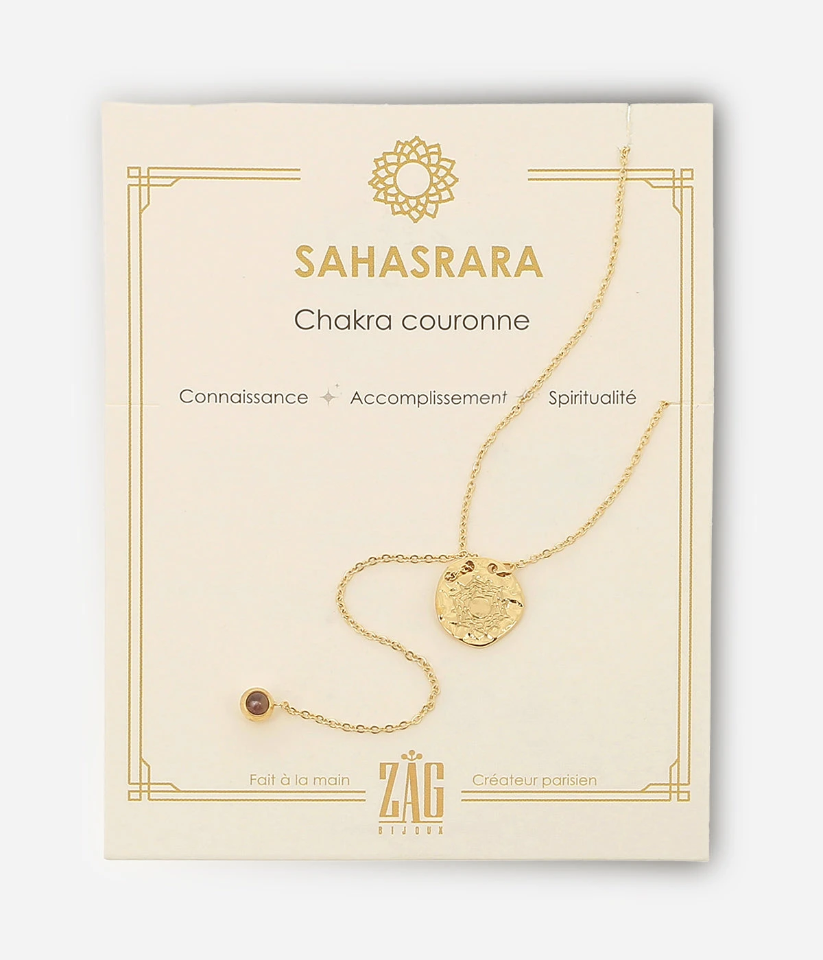 Ici, le Chakra Couronne est symbolisĂ© par l’amĂ©thyste.