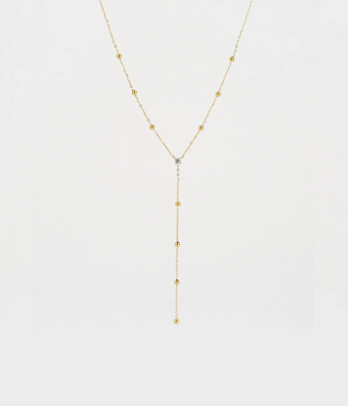 Collier en acier uni ou dorĂ© Ă l’or fin sur lequel sont parsemĂ©es des petites boucles d’acier. Un zirconium est serti au centre de ce bijou raffinĂ©, apportant de l’Ă©lĂ©gance et de la finesse Ă la tenue.Â