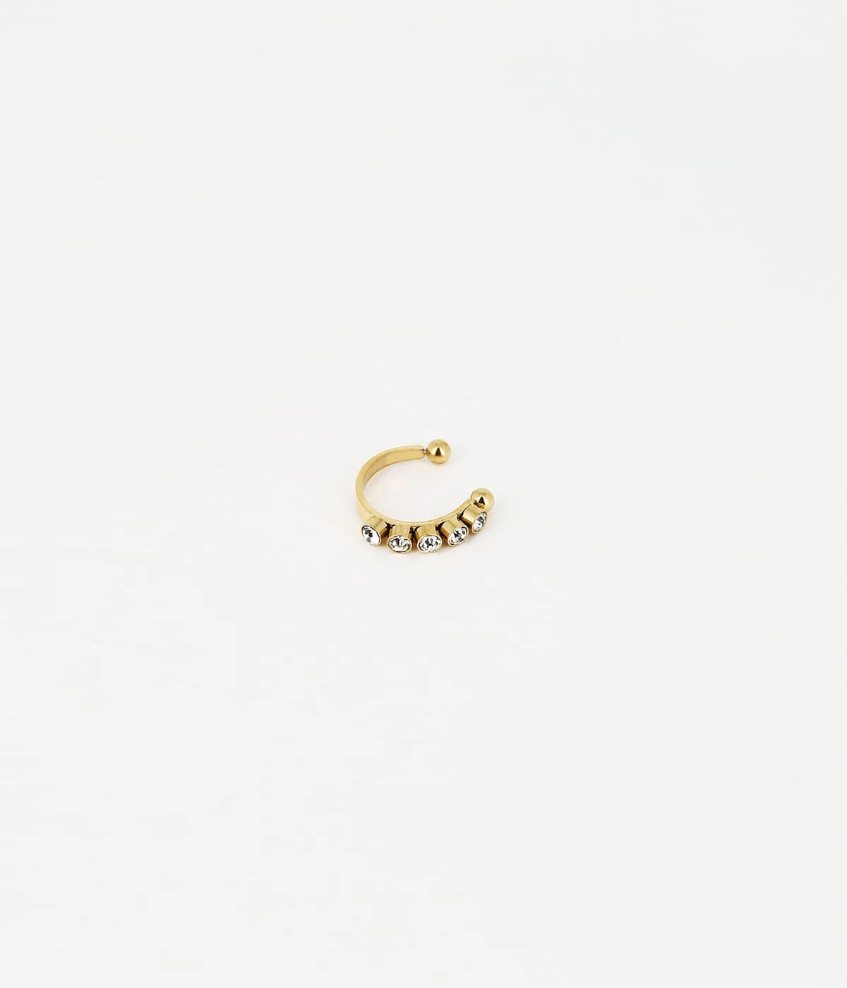 Earcuff en acier uni ou dorĂ© Ă lâor fin Ă porter en haut de lâoreille pour un effet chic et rock.